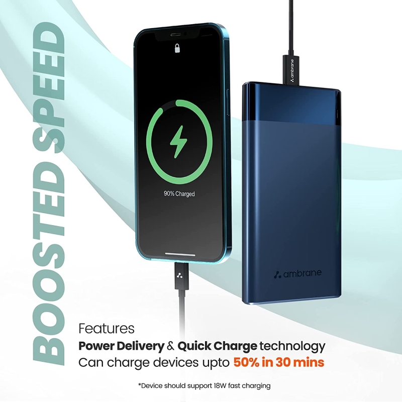 Banco de energía de polímero de litio de Ambrane 10000 mAh