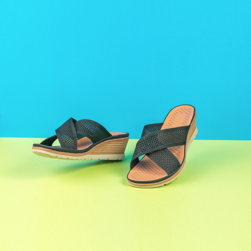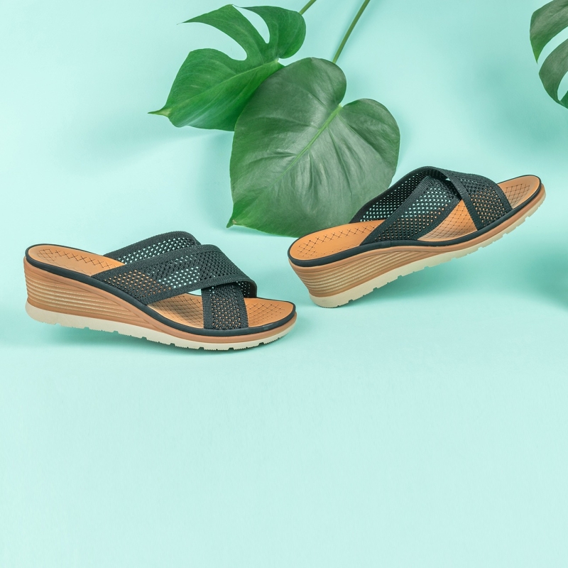 Flats de los pies abiertos negros y marrones
