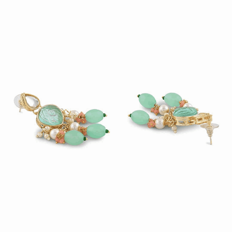 Piedras verdes y de durazno y cuentas de collar de gargantilla kundan arete y anillo