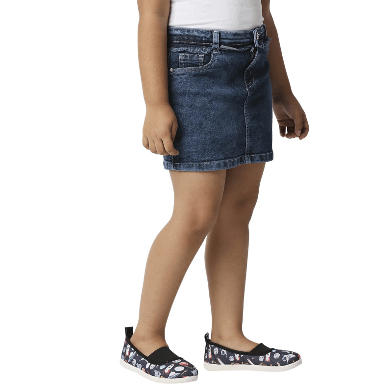 Girls Blue Solid Straight Mini Denim Skirt
