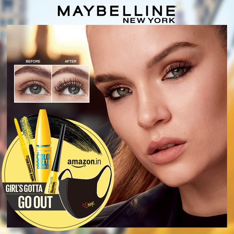 • Contents: 1x Maybelline New York Girls Gotta Go Out Makeup Kit - Waterproof Mascara, Kajal, Bold Liner + Face Mask