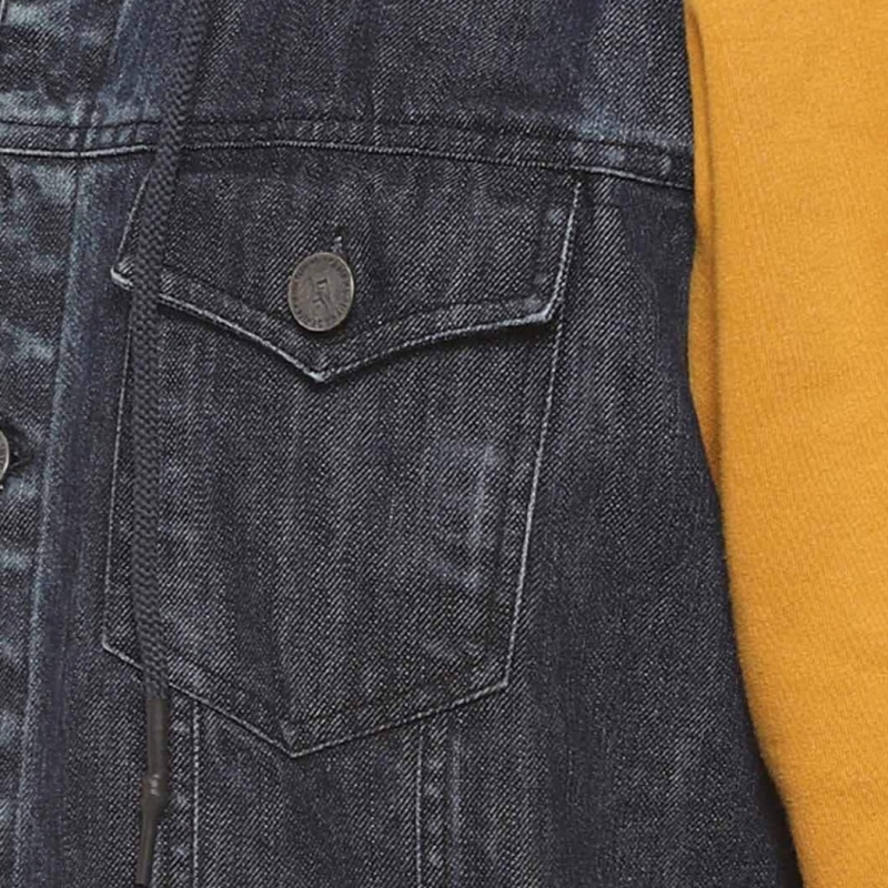 Men Charcoal Mustard Washed Colourblocked Windcheater Denim Jacket
