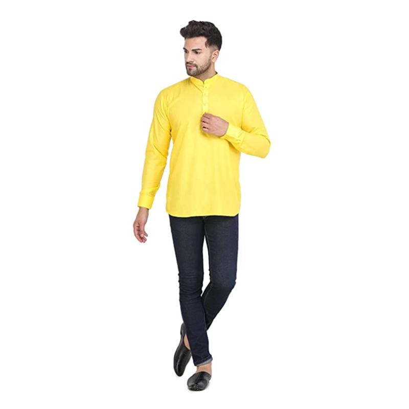 • Collar: Mandarin Collar, Sleeves: Full, Fit type: Regular/ Comfort, Length: Mid Thigh length Kurta