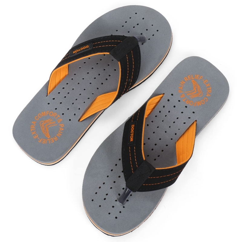 • {✔} ANTI-SKID AND TIRED, ACHING LEGS: - Good Rubber Grip Enables You to Use These Slippers on Wet Floors, Tiles, Marbles, Etc. This Rubber Sole Is Long Lasting and Provides Uninterrupted Daily Usage. Doctor Extra Soft Flip-flops will help to control