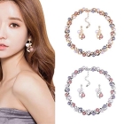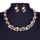 Quality: Gold plated pearl necklace jewellery set studded with crystal and cubic zirconia diamonds