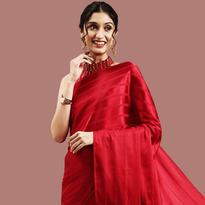 Color :- Red Solid Saree || Red Unstitched Blouse