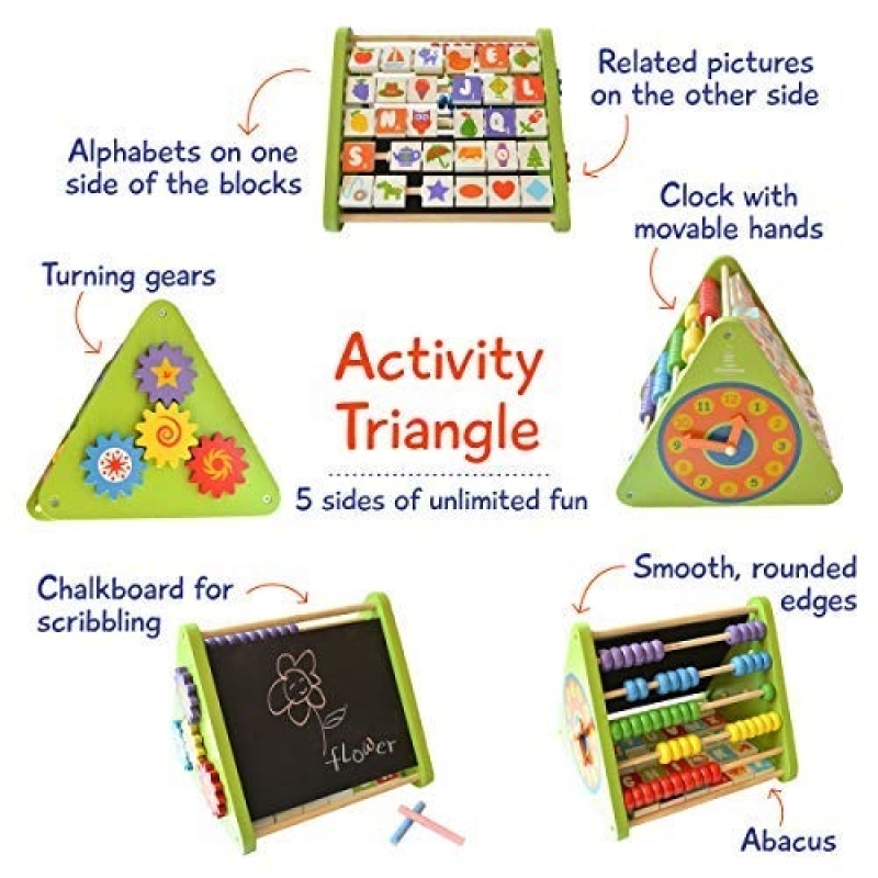 Toy de aprendizaje de triángulo de madera 5-en-1 | Aprender alfabetos