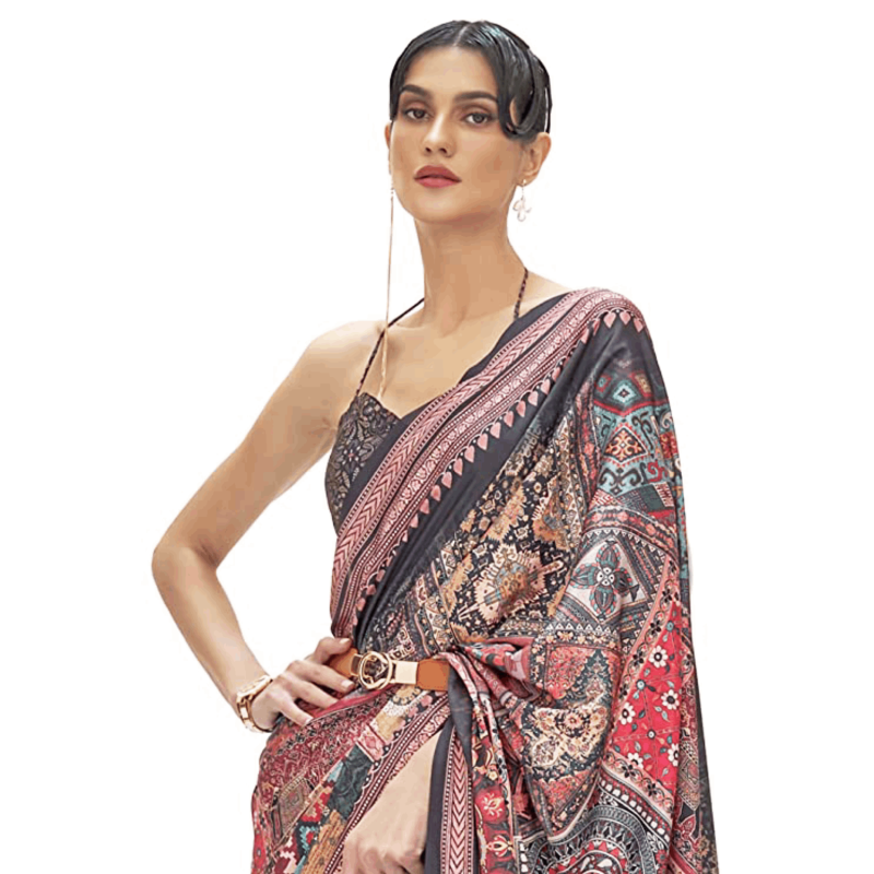 Sari de impresión digital Kalamkari crepe de Kalamkari de Akhilam con pieza de blusa sin costura