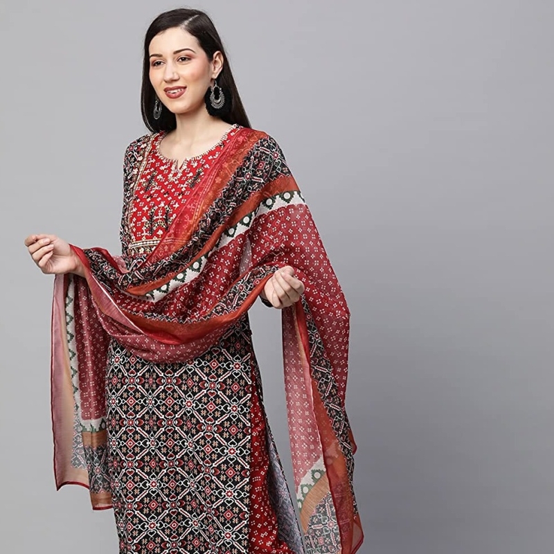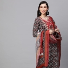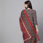 Anni Diseñador Mezcla de algodón de algodón Impreso Kurta heterosexual con pantalón y dupatta