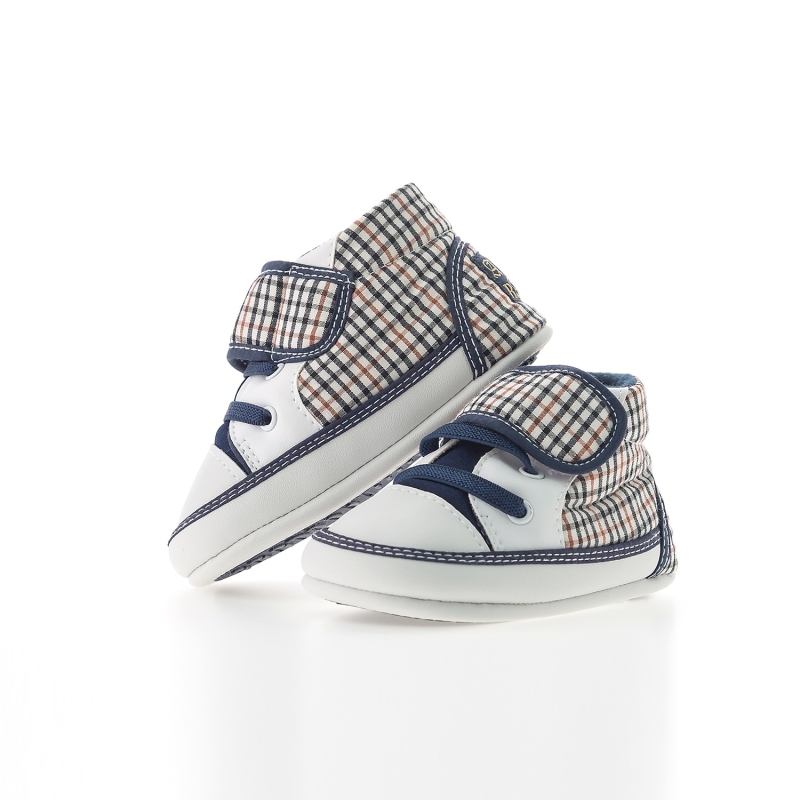 Niños White & Blue Slip On Sneakers