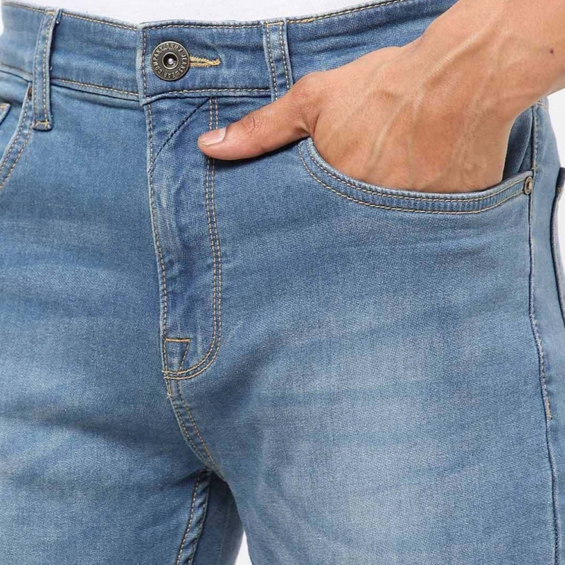 Hombres azules azules delgados fondos pesados ​​jeans estirables