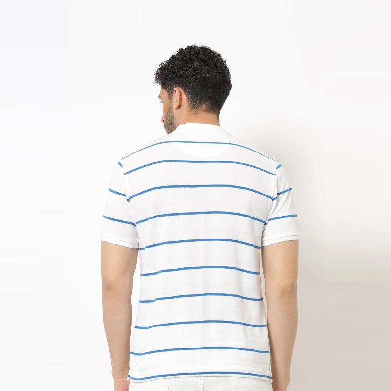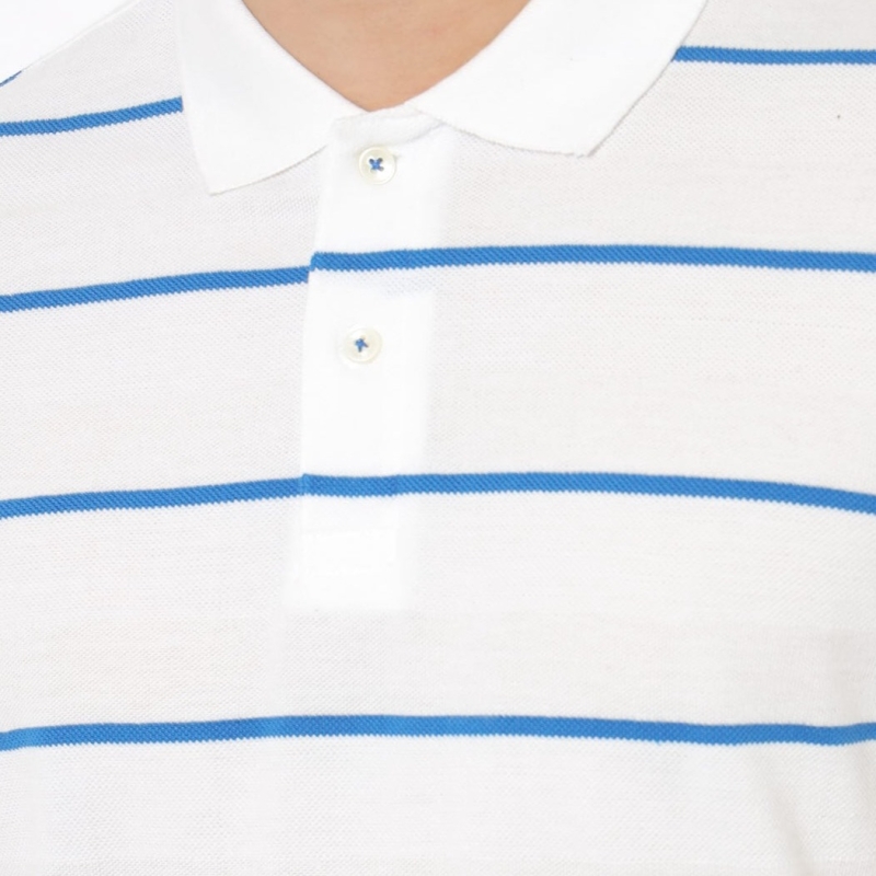 Camiseta de algodón puro de cuello de polo de rayas blancas y azul
