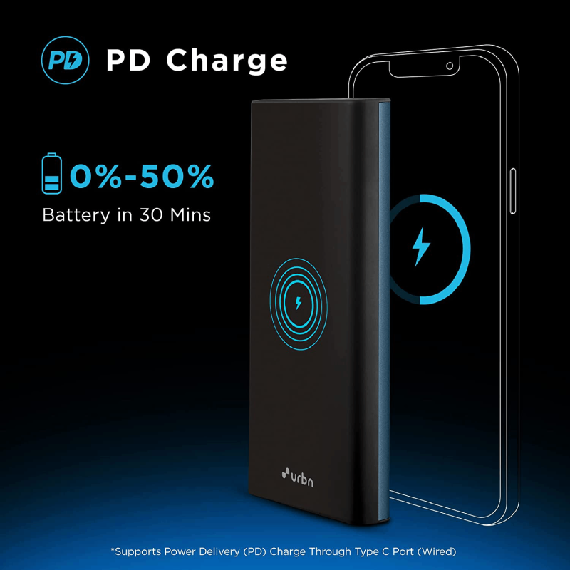 URBN 10000 MAH 15W LI-Polymer Premium Black Edition Wireless Power Bank