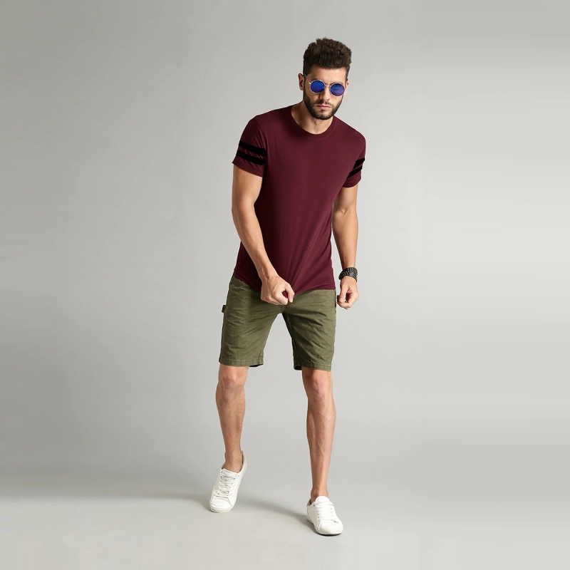 Men Maroon Curl Edge Cotton T-shirt