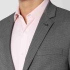 • Grey self design slim fit formal blazer, has a notched lapel collar, long sleeves with buttons, single breasted with button closures,2 mock pockets with flaps ,1 pocket on chest and 2 internal pockets, attached lining, double vented back hem.