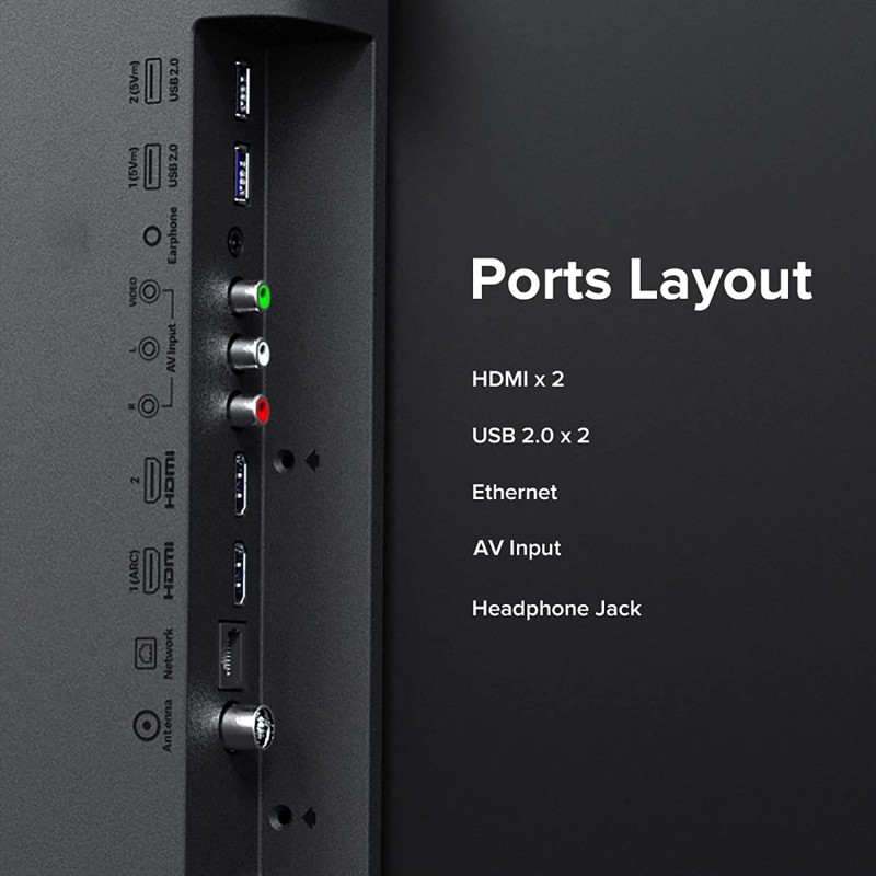 • Connectivity: Dual Band Wi-Fi | 2 HDMI ports to connect latest gaming consoles, set-top box, Blu-ray Players | 2 USB ports to connect hard drives and other USB devices | ALLM | ARC | Bluetooth 5.0 | Ethernet