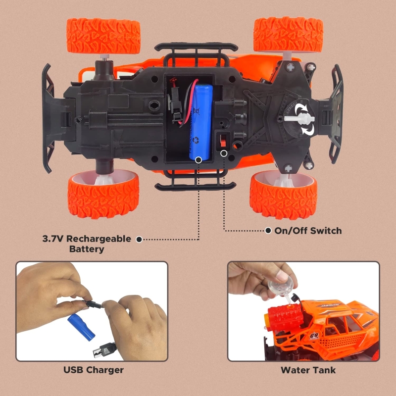 • Unique Spray Streaming : After adding water through the small water bottle and pressing the button, it can be sprayed with LED lights showing. This is a cool model of a remote control car for girls and boys.