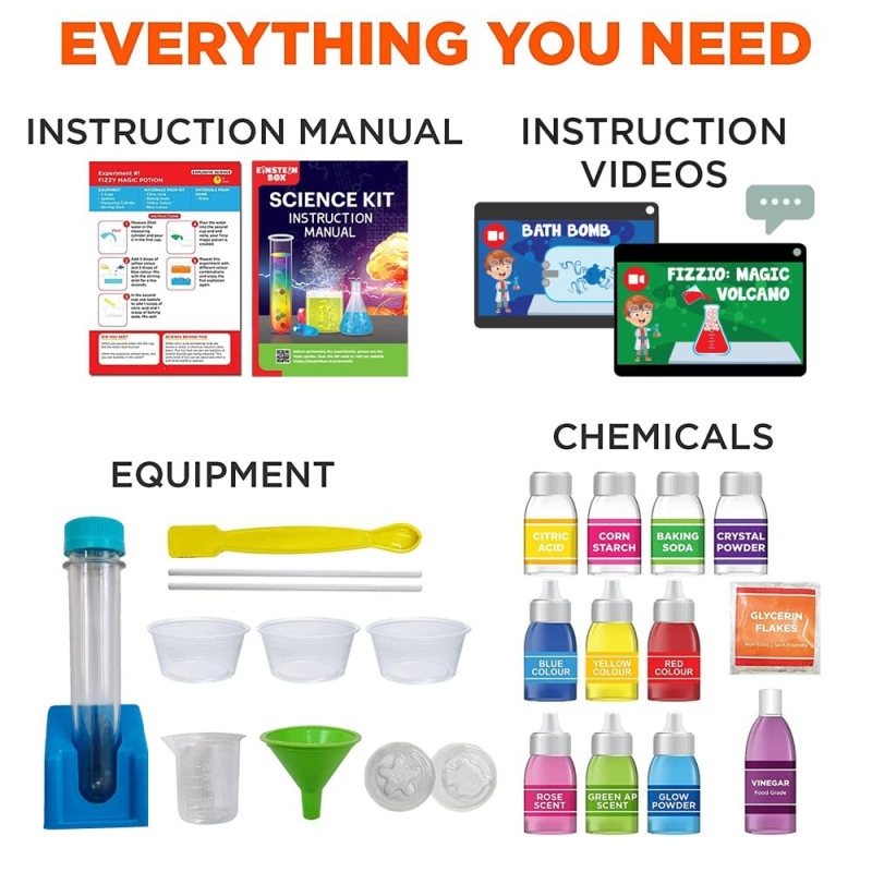 • EASY TO USE - We deliberately put the chemical materials in separate leak-proof bottles. Kids can easily perform the experiments multiple times without creating mess!